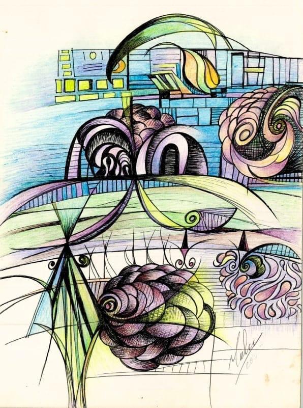 A selection of drawings, paintings, and conceptual design works exploring abstraction, form, and emotional expression.